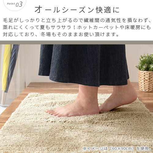 ふんわりやさしい手触りの肉厚な玄関マット。滑り止め機能も付いていますので、玄関だけでなくいろんなシーンで活躍するマルチマットです。