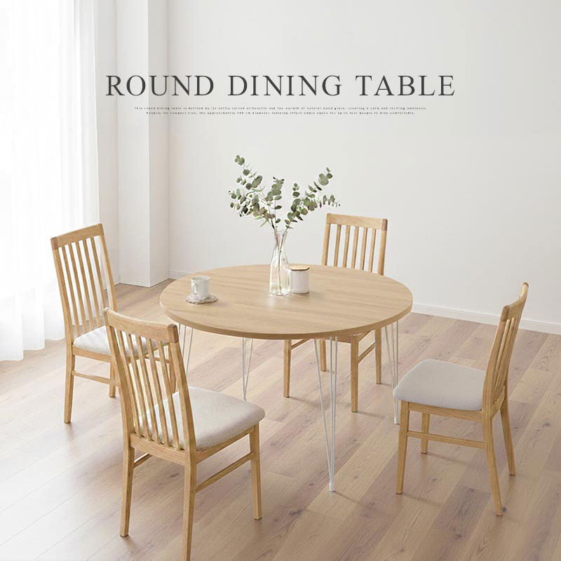 柔らかな雰囲気を作り出すフォルムと温かみを感じる木目が特徴的な円形のダイニングテーブル。
