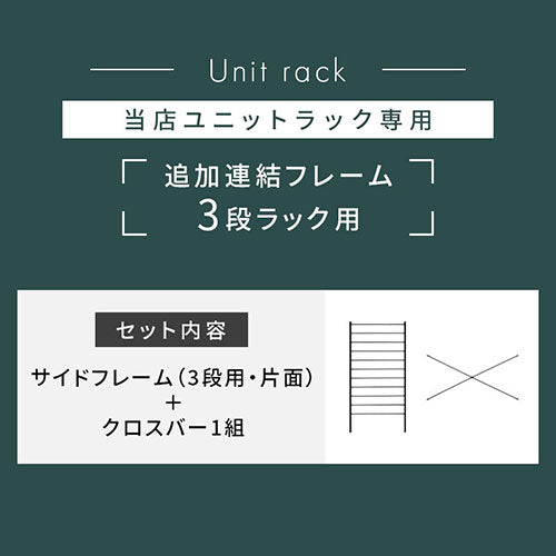 収納が手軽に増やせる、ユニットラック専用追加連結フレーム。〔3段用〕