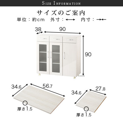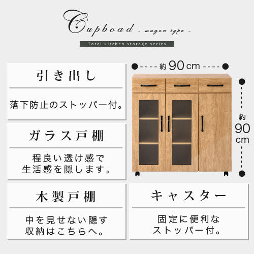 棚 食器棚 しょっきだな キッチン棚 キッチン収納棚 収納棚 整理棚 ガラス戸棚 ラック キッチンラック ローラック 木製ラック 台所ラック カップラック 収納ラック カップボード キッチンボード シェルフ キッチンキャビネット ワゴン キッチンワゴン 台所ワゴン ワゴンラック 食器収納台 台所家具 キッチン家具 コップ 収納 キッチン収納 台所収納 食器収納 可動棚 扉 扉付き ガラス戸 ガラス扉 開き戸 両開き 観音開き ワゴンタイプ ロー キャスター キャスター付き キャスター付 引出し 引き出し 引き出し付き 引出し付き 引出し収納 引き出し収納 ストック収納 木目 木 木製 整理 キッチン 台所 一人暮らし 食器 カトラリー ナチュラル ホワイト ウォールナット 白 白色 茶 茶色 約 幅90 奥行き40 高さ90 cm カジュアル おすすめ アースカラー 白っぽい おしゃれ オシャレ お洒落 げきかぐ ゲキカグ ぼんかぐ ボンカグ ボン家具 ぼん家具 株式会社ぼん家具 完成品 開梱設置 組立不要 組み立て不要