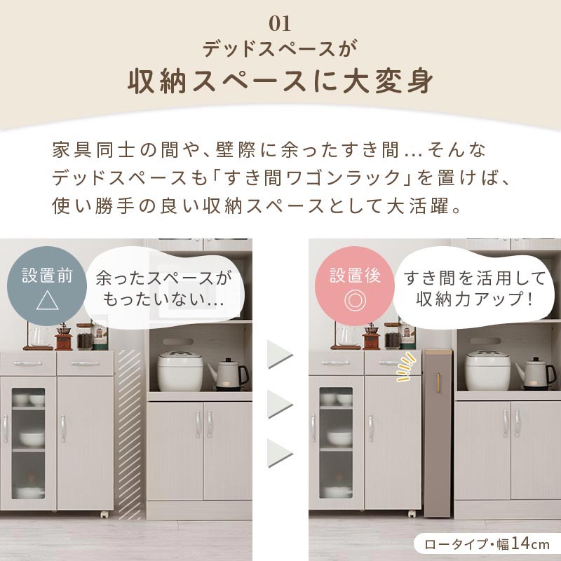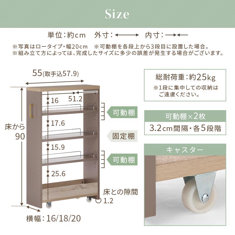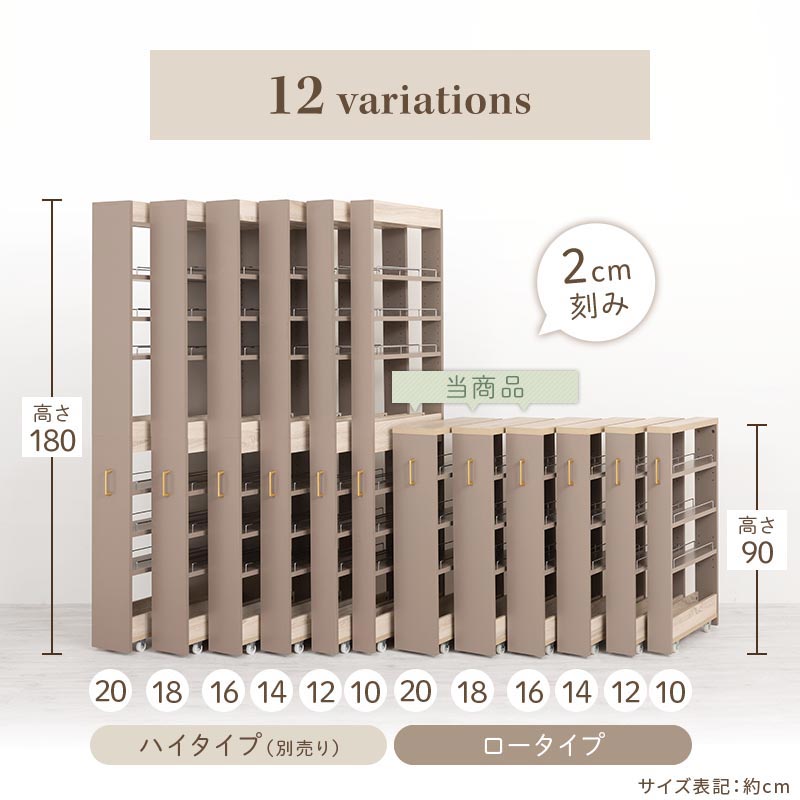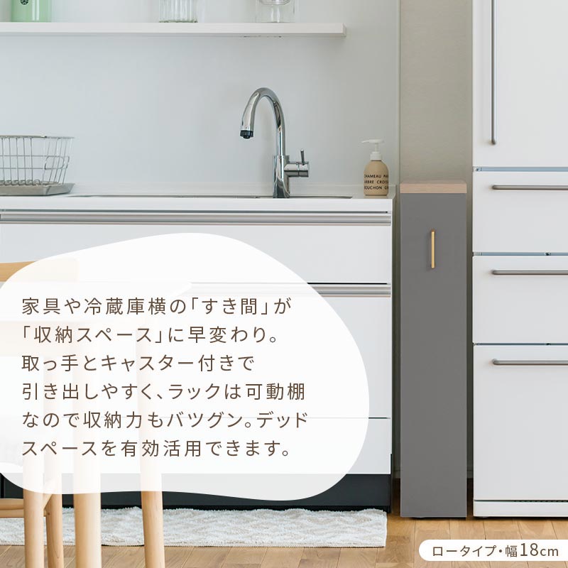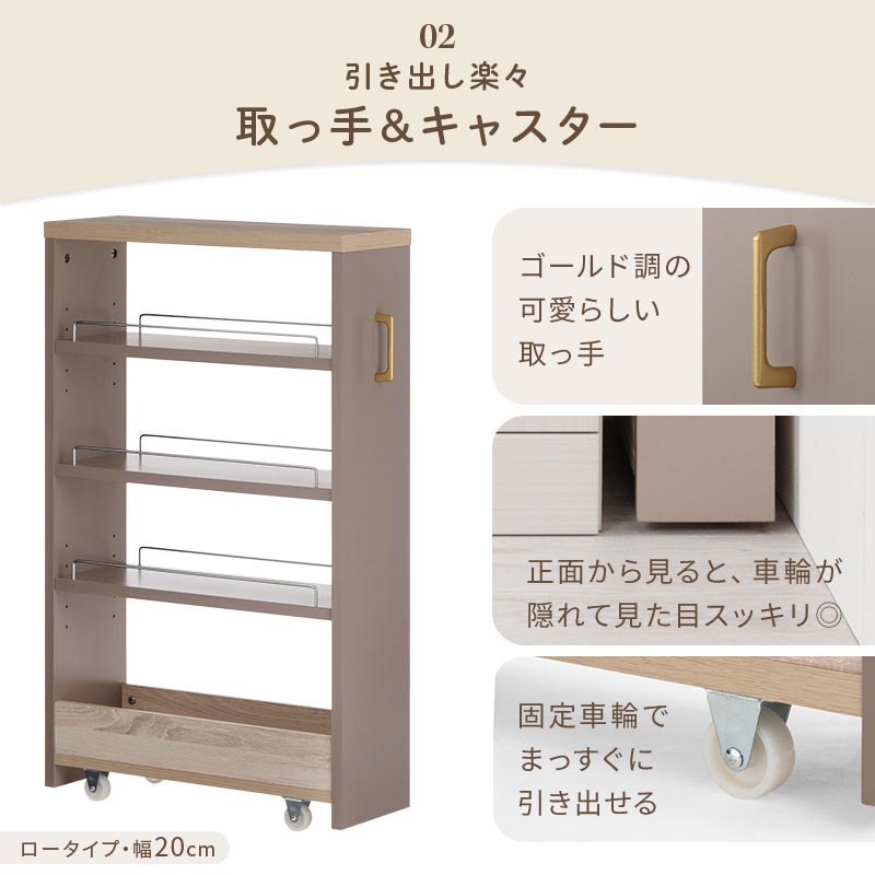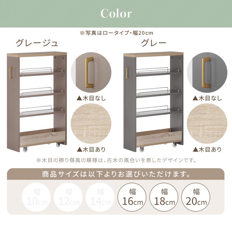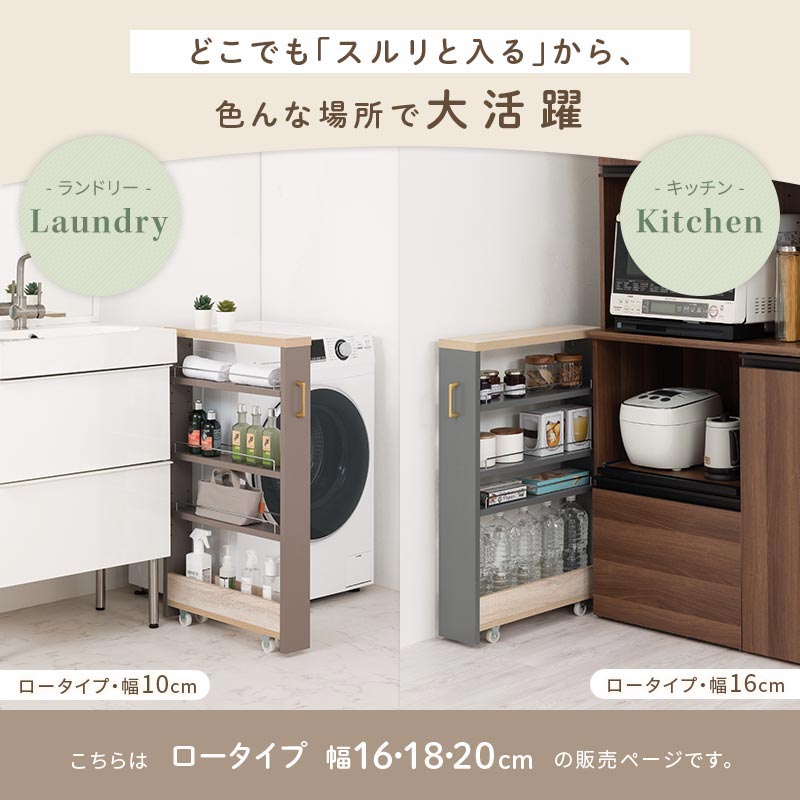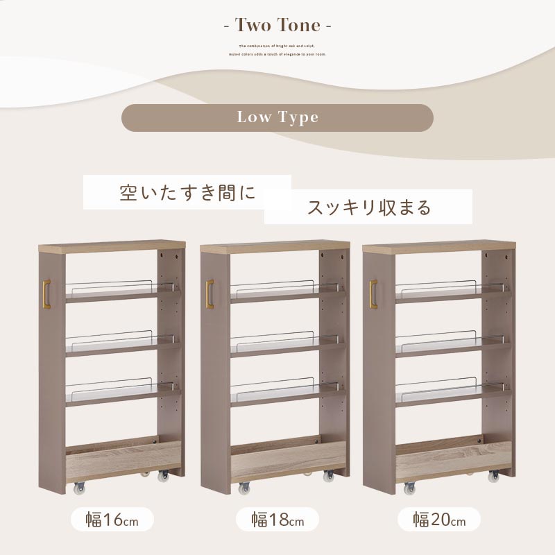 ワゴンラック ロータイプ〔幅16~20cm〕
