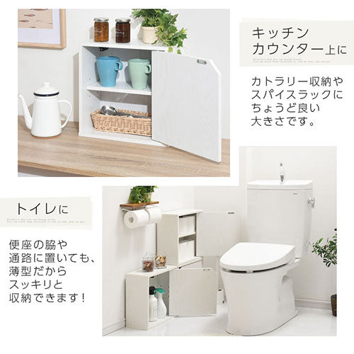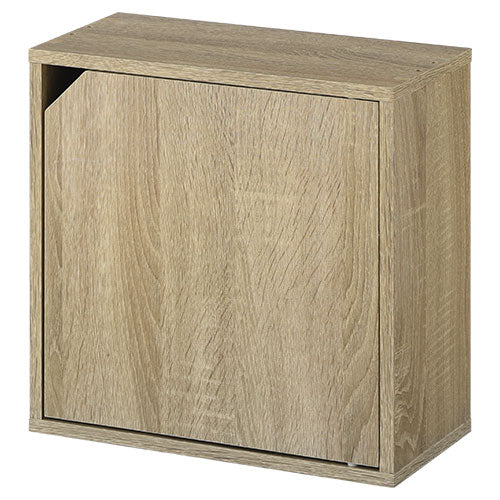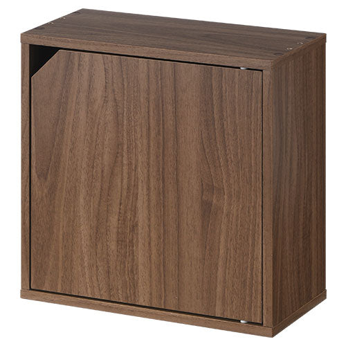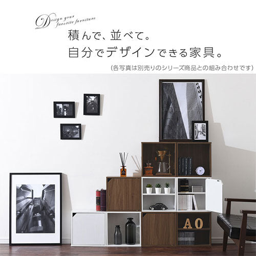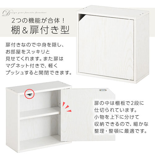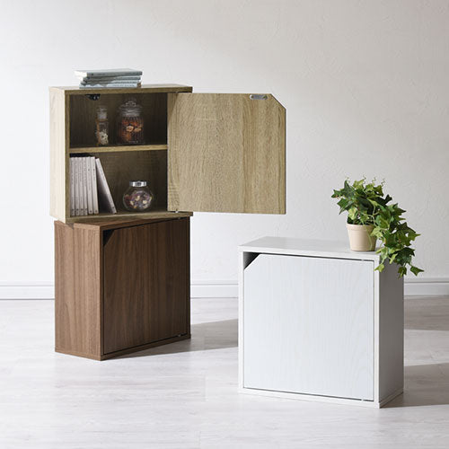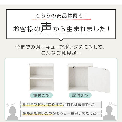 棚と扉が付いた、お部屋を広く見せる薄型タイプの木製キューブボックス。