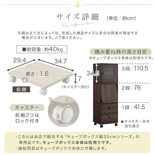 キャスター キャスター台 キャスターベース キャスターユニット キャスター付き スタンド 車輪 車輪付き 台 板 キャリー 台車 平台車 平台 移動台 プリンター台 プリンタ台 プランター台 プランタースタンド 花台 フラワースタンド 鉢置き 鉢台 置台 当店対応商品 キューブボックス 木製キューブボックス 木製収納ボックス 鍵付き収納ボックス 〔薄型タイプ〕 〔幅35cm〕 〔ハイタイプ〕 キューブボックスとキャスター台の組み合わせで キャスター付 本棚 絵本棚 棚 本箱 引き出し ラック シェルフ オープンラック マガジンラック 収納ラック 収納ボックス 書類整理 押入れ収納 押し入れ収納 ベッド下収納 ランドセルラック ワゴン デスクワゴン ファイルワゴン すきまワゴン すき間ワゴン 隙間ワゴン サイドワゴン サイドテーブル ベッドサイドテーブル ナイトテーブル プリンターラック プリンタラック に変身 約 幅35 幅35cm 幅34.5 幅34.5cm 耐荷重40kg 木製 スリム ミニ ストッパー ストッパー付き 積み重ね 組み合わせ 連結 縦積み 1台用 1連 2段 3段 室内用 植物 観葉植物 植木 植木鉢 鉢 プランター 加湿器 シュレッダー ポリタンク 灯油缶 空気清浄機 等の 運搬 移動 収納 大人 男性 女性 子供 こども 子ども キッズ リビング キッチン ダイニング 寝室 ベッドルーム ワンルーム 子供部屋 子ども部屋 こども部屋 押入れ 押し入れ 書斎 クローゼット オフィス 会社 事務所 デスク横 デスク下 ベッド下 ベッドサイド ベッド横 おしゃれ オシャレ お洒落 御洒落 かわいい カワイイ 可愛い 北欧 ビンテージ ヴィンテージ アンティーク 風 モダン カントリー シンプル ナチュラル 系 シャビーシック ホワイト 白 白色 オーク ベージュ ウォールナット ウォルナット ブラウン ダークブラウン 茶 茶色 ホワイトインテリア 白家具 木目 木目調 木目入り 完成品 組立不要 組み立て不要
