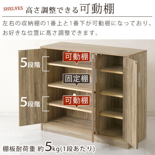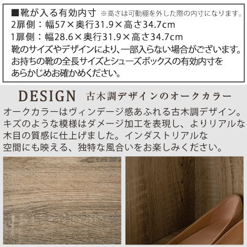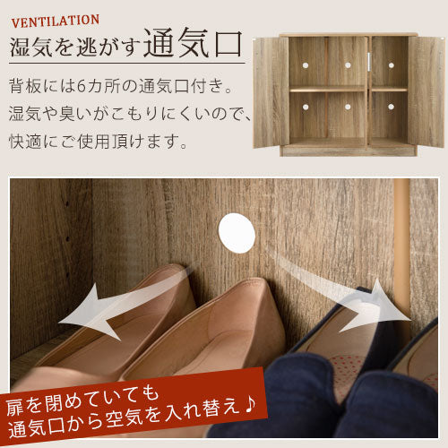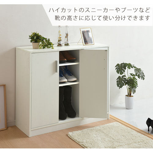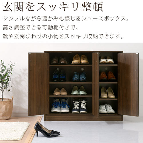 シンプルながら温かみも感じるデザインのシューズボックス。高さ調整できる可動棚付きで、靴や玄関まわりの小物をスッキリ収納できます。