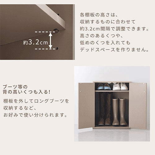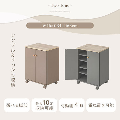 ツートンカラーがおしゃれな、脚部が選べるシューズラック。可動棚なのでブーツなどの高さのある靴も収納可能!